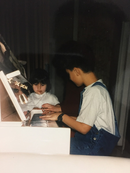 Bien qu’ayant sérieusement commencé à 7 ans, c’est à l’âge de 6 ans que j’ai eu le coup de foudre pour ce magnifique instrument. Autodidacte et curieux de nature, mes parents ont rapidement décelé mon attrait pour cet instrument ; Forcément, car tout petit, je passais plus de temps à pianoter sur mon synthé miniature que sur mes jouets…!